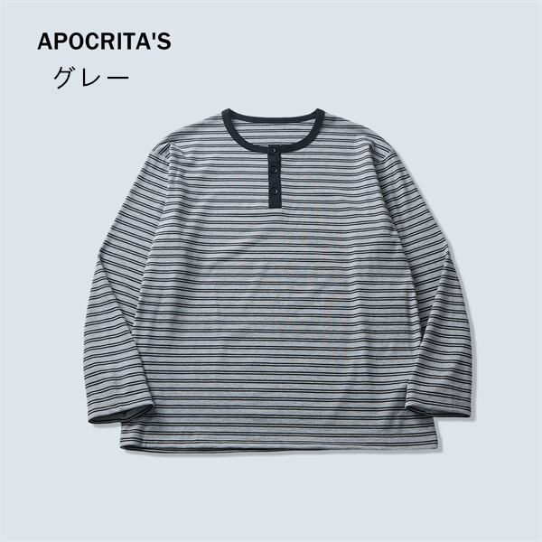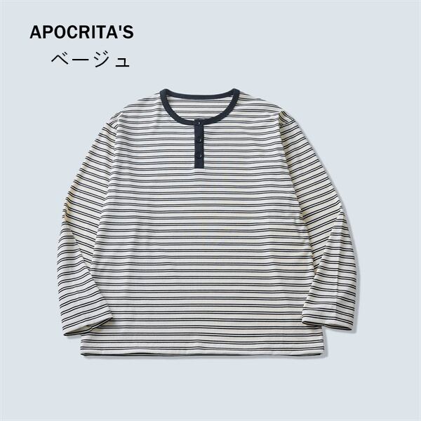 Tシャツ ストライプ ラウンドネック 長袖 メンズ トップス カジュアル