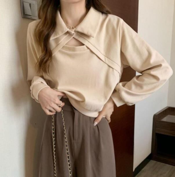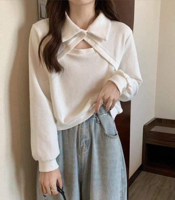 レディース 女 長袖 無地 ポロシャツ Tシャツ トップス インナー S-2XL